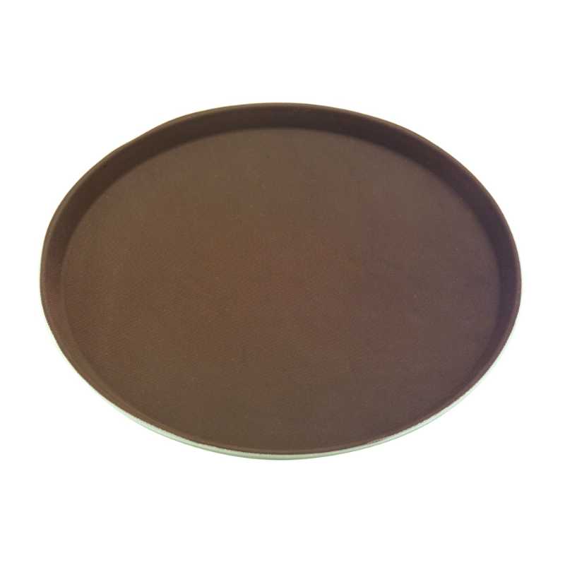圓形防滑托盤(PP膠底), 棕色, Ø36x2cm